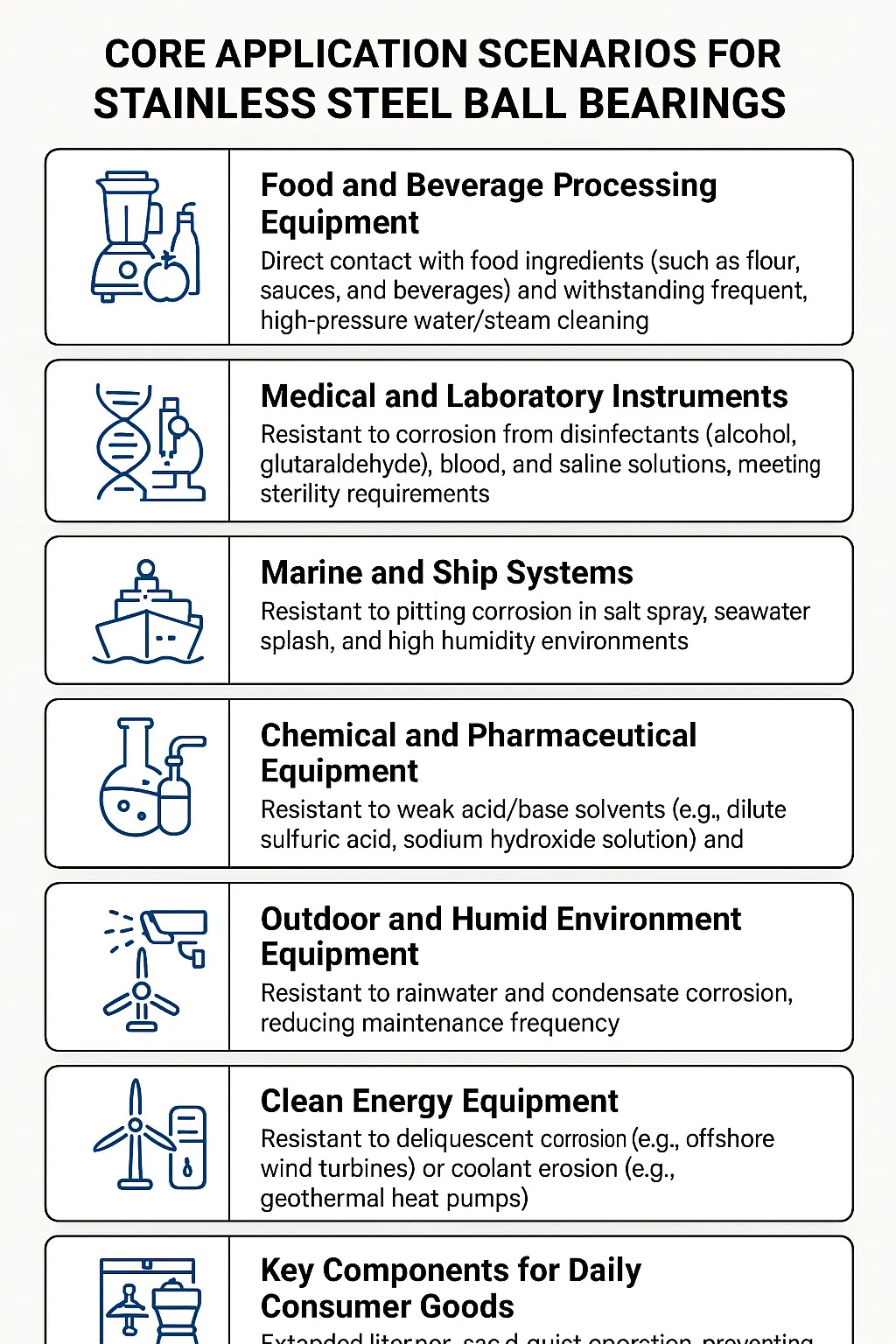 Scenarii de bază pentru aplicații pentru Rulmenți cu bile din oțel inoxidabil
